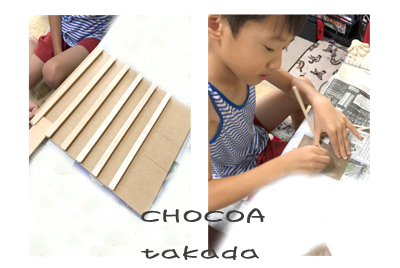 作品は息子が提案して設計図や材料は妻が考えコーナンで木材を購入